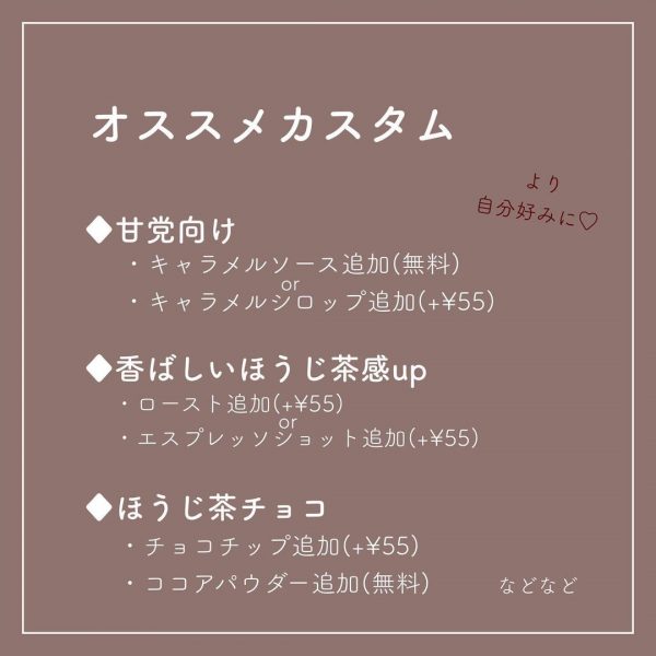 ・ロースト追加(+¥55)orエスプレッソショット追加(+¥55)