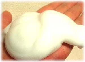 まずは、シャンプーを適量手にとり、手の中で泡立てます(直接、原液を地肌につけるとダメージを受けてしまいますので、必ず最初に泡立てましょう。泡立てネットはとても便利です)。