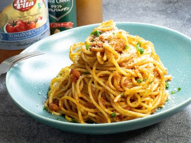 業務スーパーの『トマト&イタリアンチーズパスタソース』は、瓶に入ったパスタソースなので保存期間も長いですし、常備しておいて損は無い商品!試してみてくださいね!
