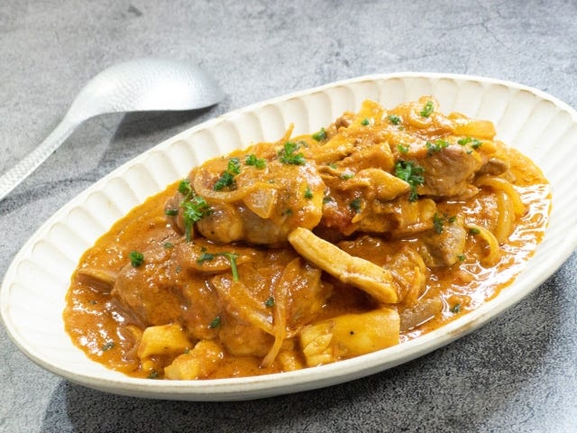 ④ お皿に盛り付け、パセリを振ったら、完成です。