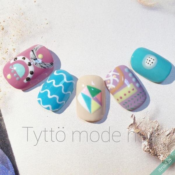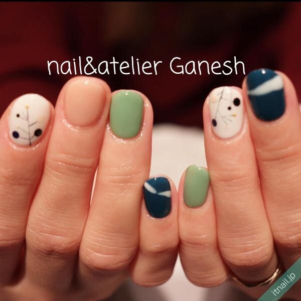 北欧テイストネイルは、爪5本にそれぞれ異なる柄を描いて作るのもおすすめです。