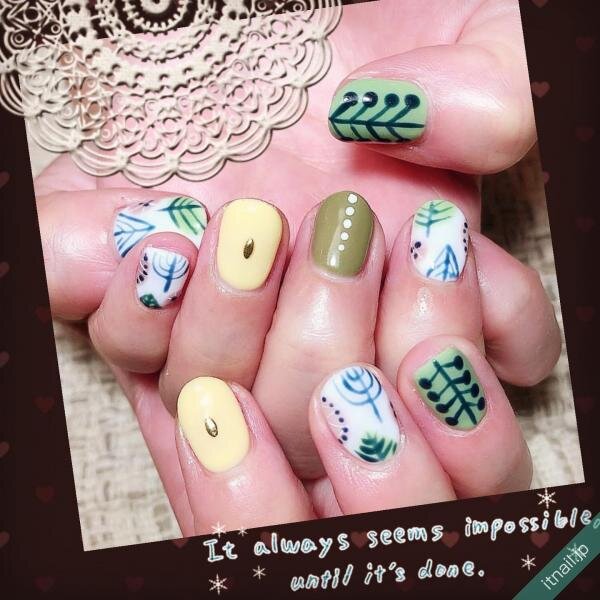 植物のモチーフをアートした北欧テイストネイル