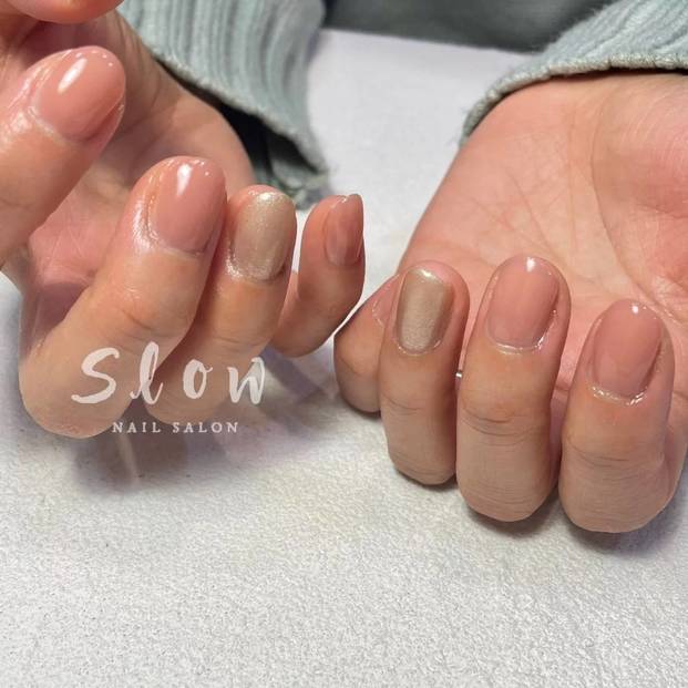 ピンクゴールドの優しい光が、手元を明るく彩ってくれるマグネットネイルです。