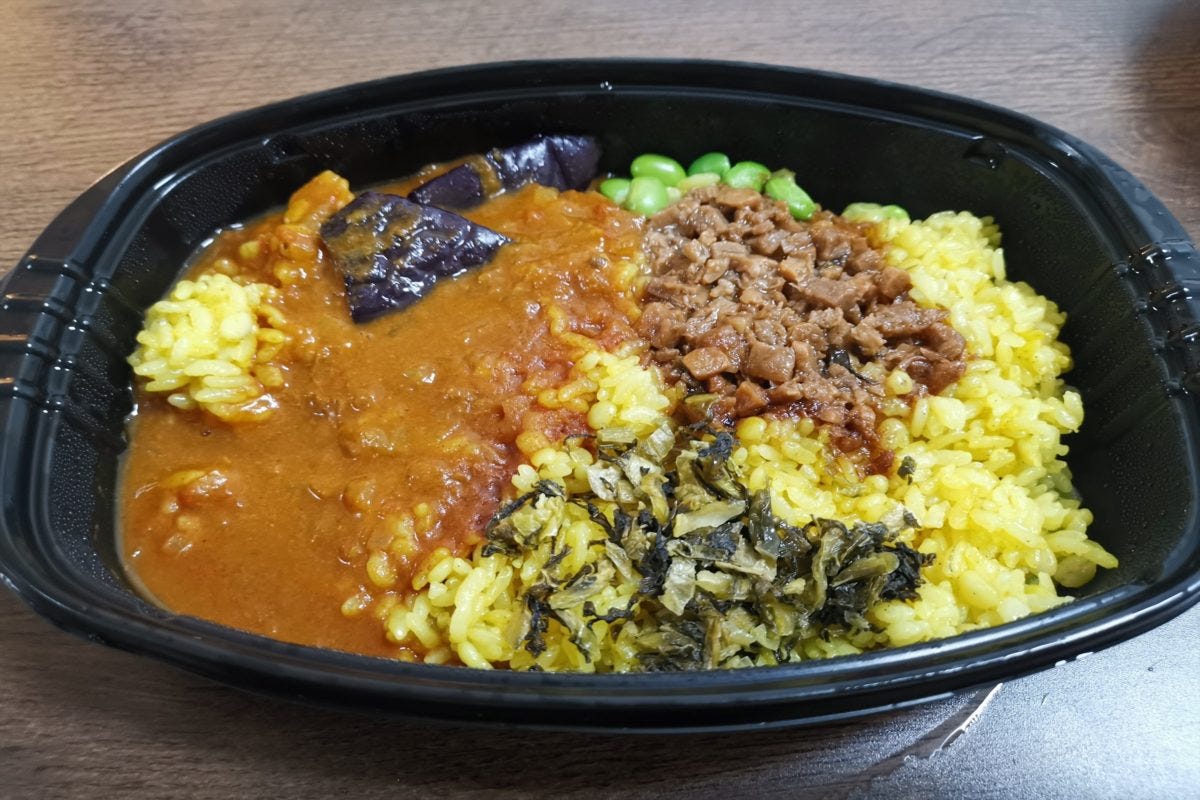 台湾のローカルフードとスパイスカレーを合わせたこだわりの一品で、以前弁当として提供されていたカレーとはまた違うスタイルだ。