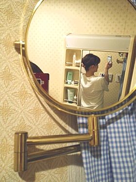 手鏡などを持って、後ろの鏡に反射させて見てみましょう。