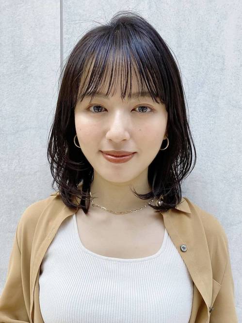 前髪はシースルーバングで自然に流して抜け感を作りましょう。