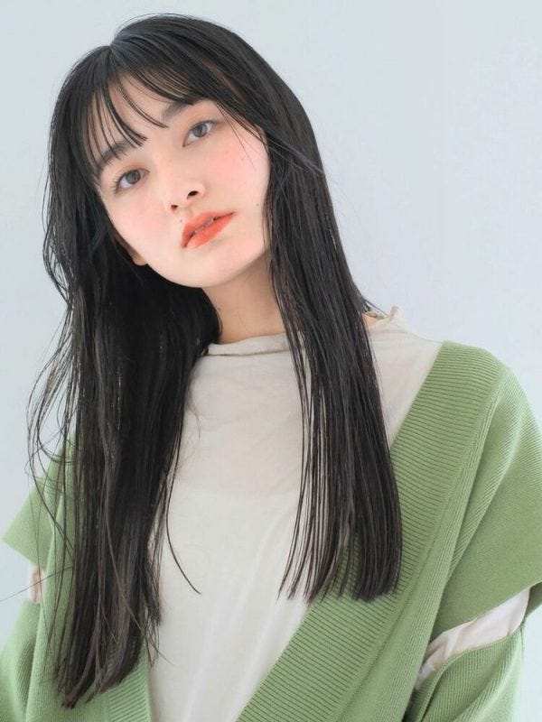 シンプルなストレートロングに合わせるだけでも、ヘアスタイル全体がぐっとおしゃれになりますよ。