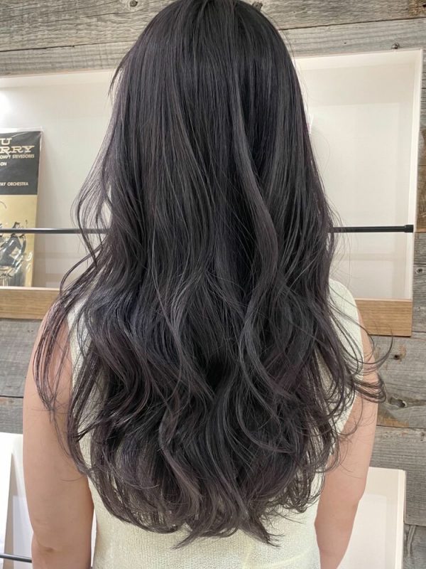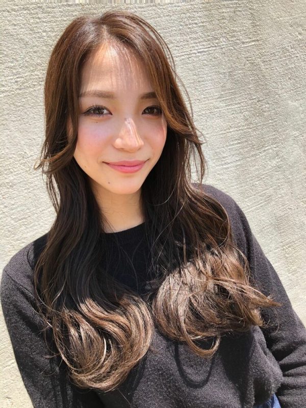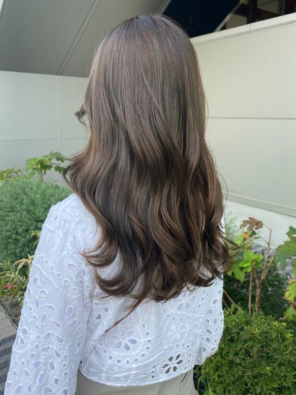 女性らしいベージュ系カラーをスモーキーに仕上げた髪色は、差別化の難しいロングヘアを今っぽく更新したい方におすすめです。