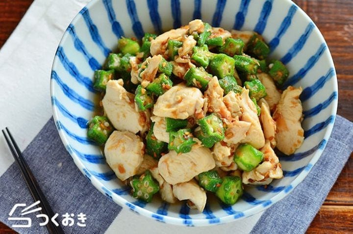 オクラとささみの梅おかかポン酢和えは、梅干しを使うので食欲がない日でも食べやすい人気の副菜レシピです。おくらは板ずりして鍋で茹で、ささみは電子レンジで加熱するだけなので時間がない日でもささっと作れます。