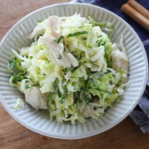 キャベツを大量消費したいときのレシピは、キャベツとささみで作るキャベツとしっとりささみの和風コールスローがおすすめ。