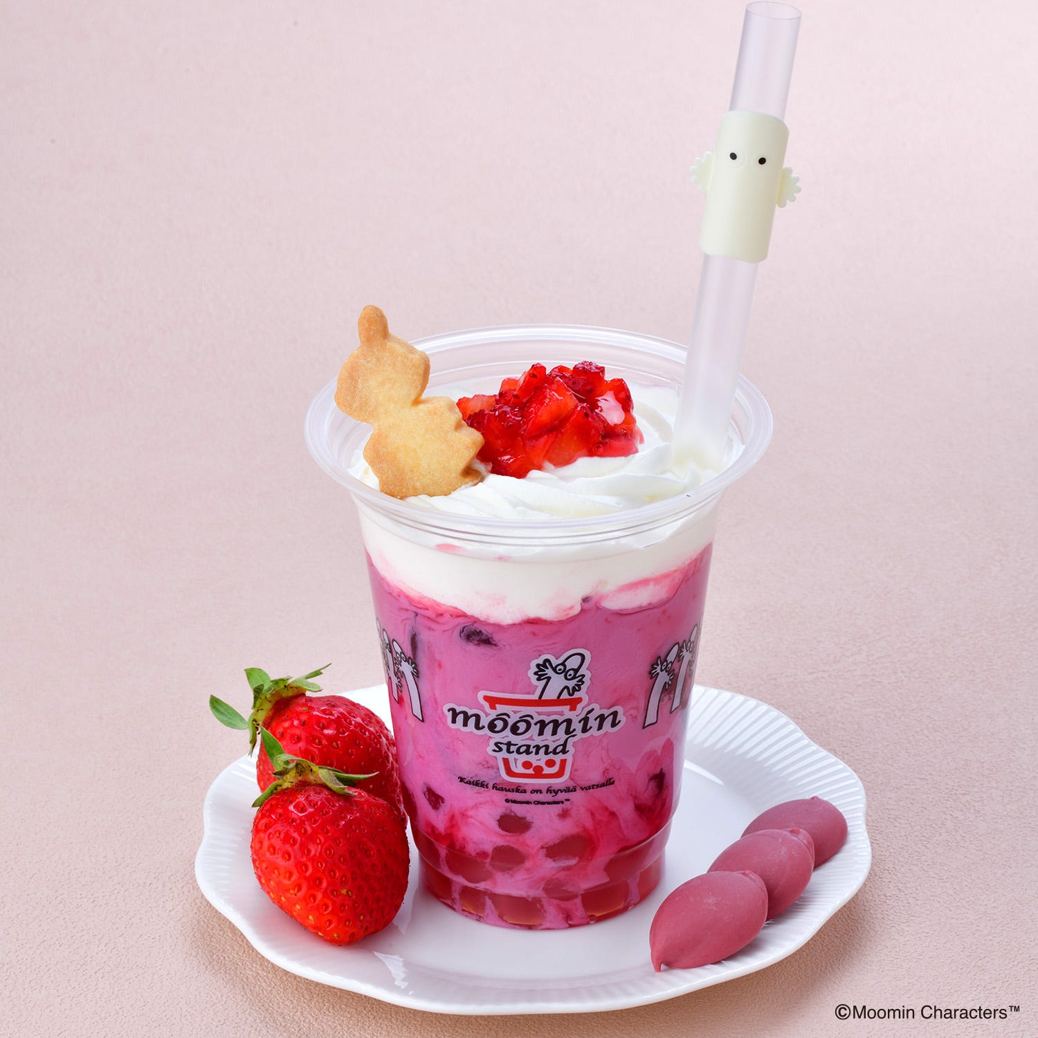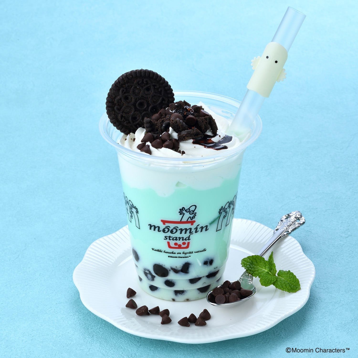 ちょこんと添えたリトルミイのクッキーとともに召し上がれ♪ それぞれムーミンスタンドオリジナルの「ニョロニョロのたね」を追加でトッピングするのがオススメだよ。