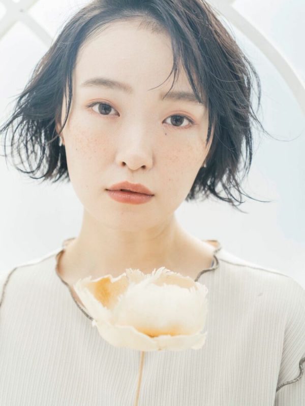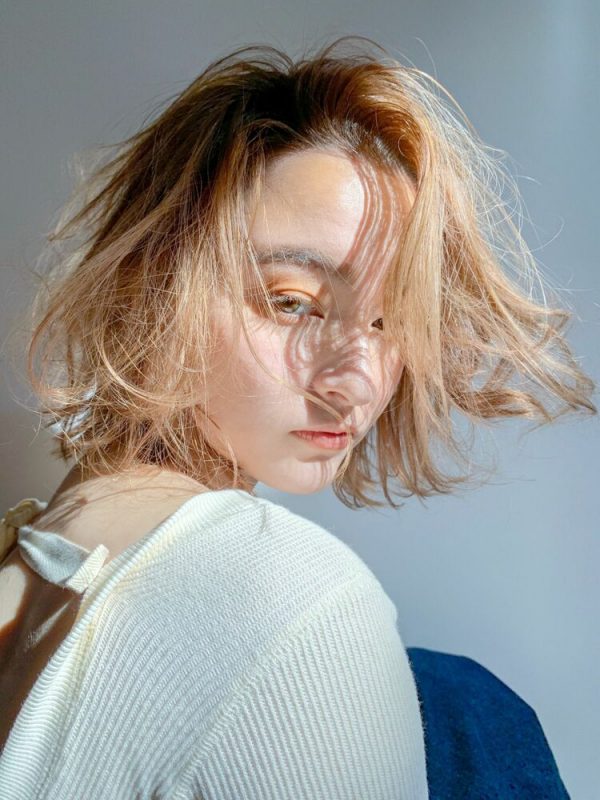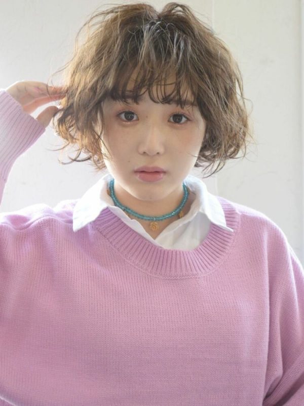 カラーリングが透明感のある色なので、パーマでボリュームを持たせた骨格ナチュラルさん向けボブも軽やかな印象に仕上がっています。