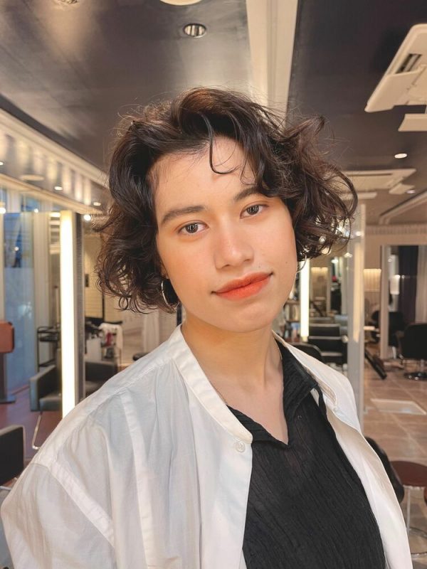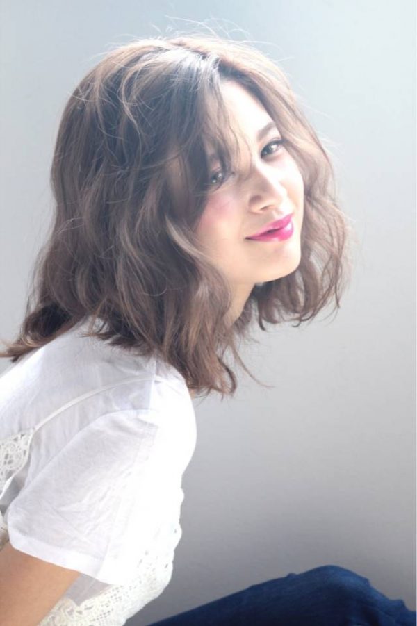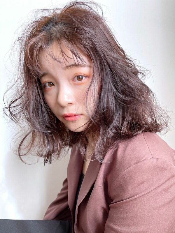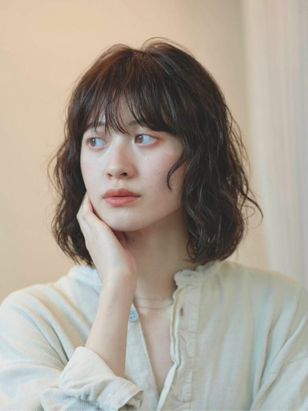 前髪にも軽くパーマをあてていることで、バランスのいいヘアスタイルに仕上がっていますね。