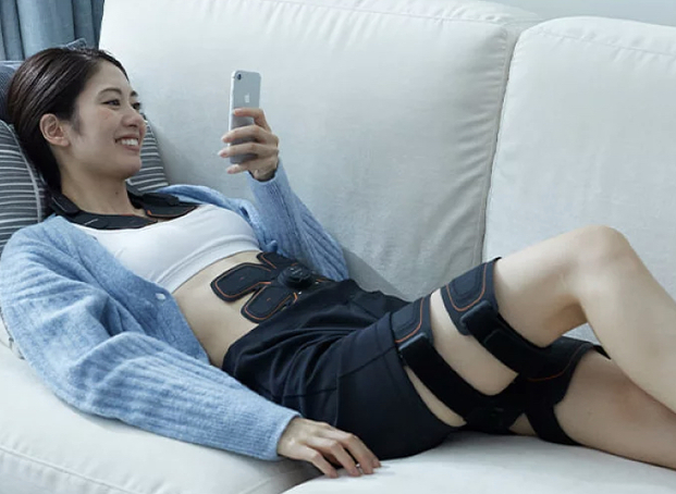 腹筋に直接EMSが働きかけてくれるので、つけているだけで鍛えられます。薄くて軽いコードレスに加え、アプリと連動しているので三日坊主になる心配もなし。(EMS=電気刺激により筋肉を収縮させる技術)