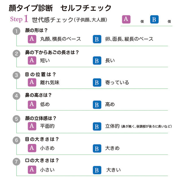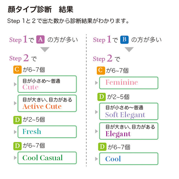 顔タイプ診断では、顔の形やパーツの配置をチェックするため、チェックする際は顔の輪郭が隠れないよう髪をアップにしておきましょう。