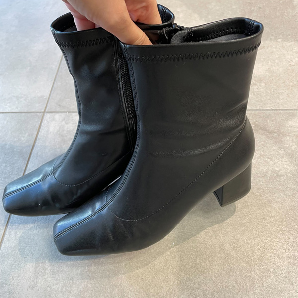 ストレッチ性に優れた素材を使用しているため、足首にきれいにフィットし、美しいシルエットを実現。足元をすっきりと見せてくれる、スクエアトゥデザインを採用したブーツなんです。