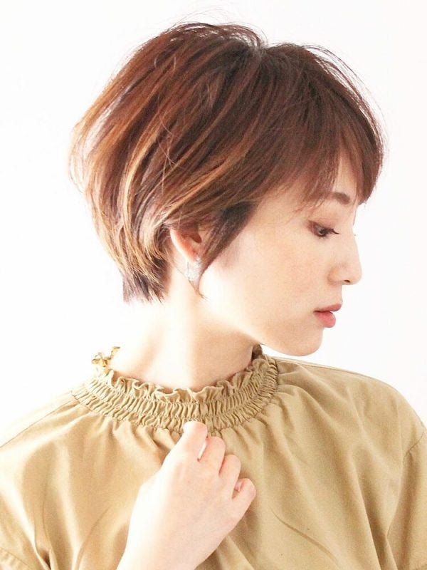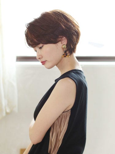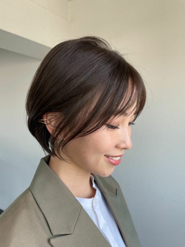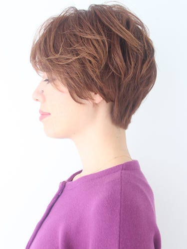 こちらは、レイヤーで骨格補正をしているので小顔見せが叶うショートヘア。スタイリングは全体をブローした後、手ぐしで整えるだけでOKです。