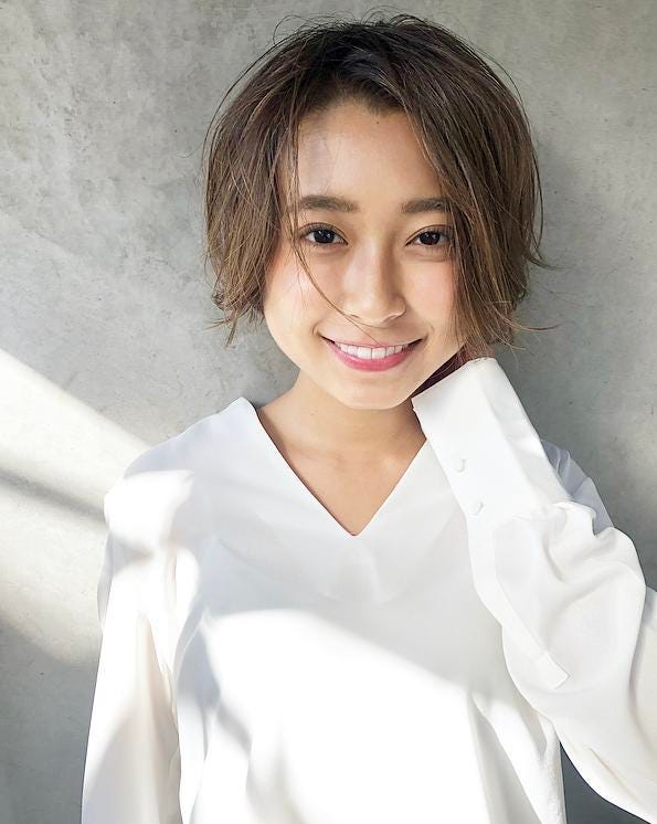こちらは、トレンド感のあるヘアカラーと、女子アナ風の知的な印象のショートヘアの組み合わせです。