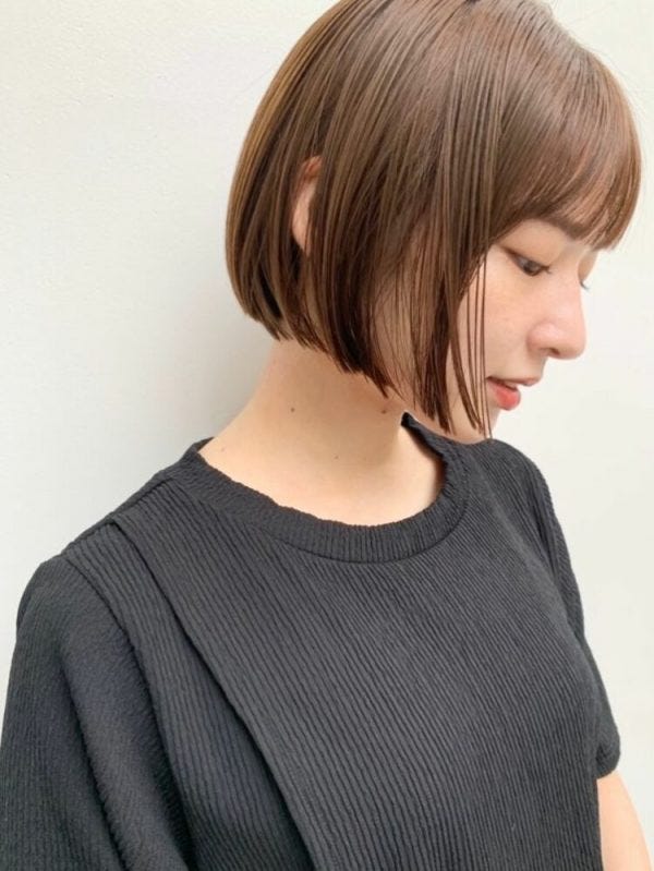 人気が高いシンプルなショートボブですが、ヘアオイルやヘアバームを髪全体になじませて、束感を活かしたスタイリングがおすすめです。