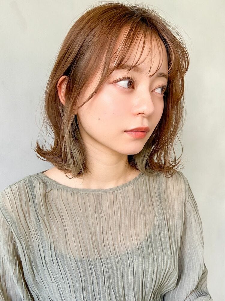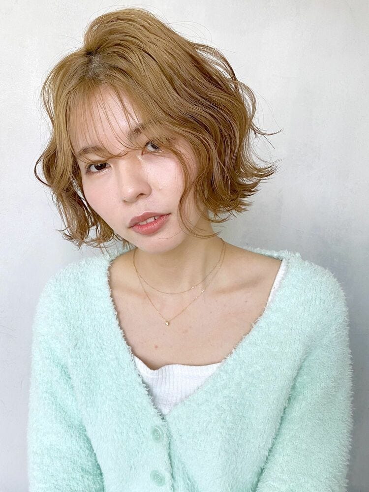 明るめのヘアカラーだと、パーマでボリュームを出したボブヘアでも頭が重たく見える心配がありません。