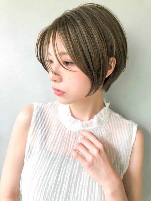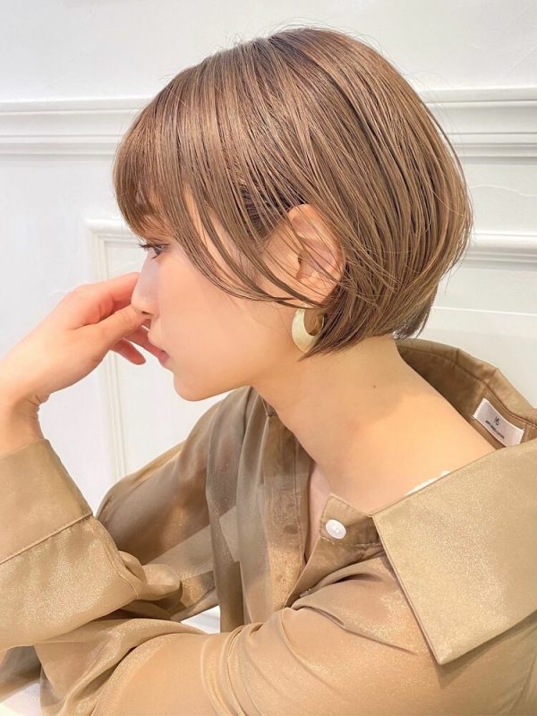 丸みのあるシルエットがおしゃれなコンパクトショートに、この春トレンドになっているミルクティーアッシュを組み合わせています。