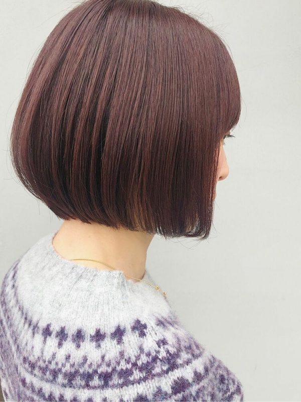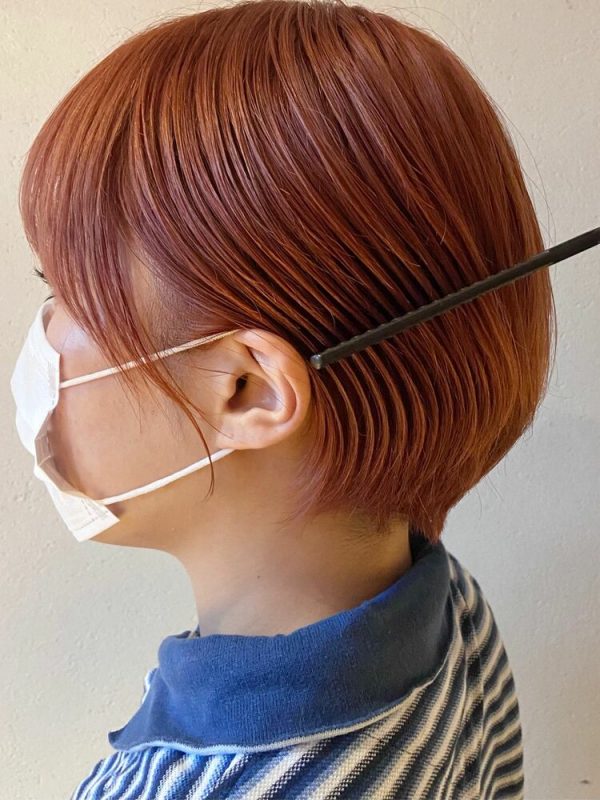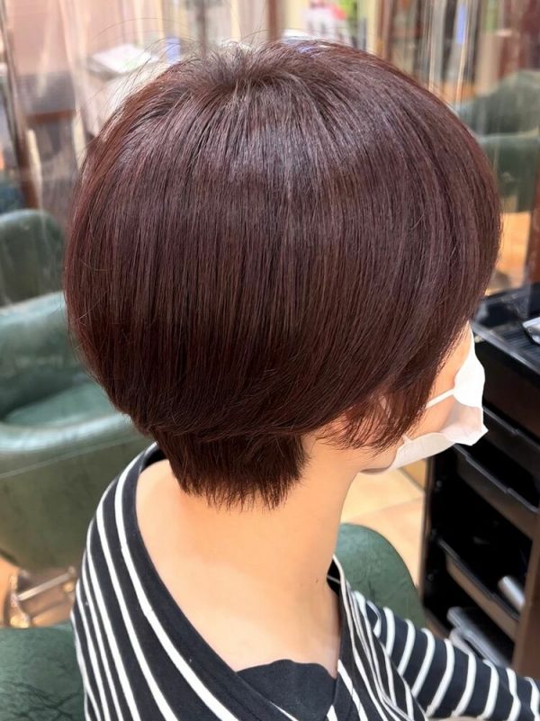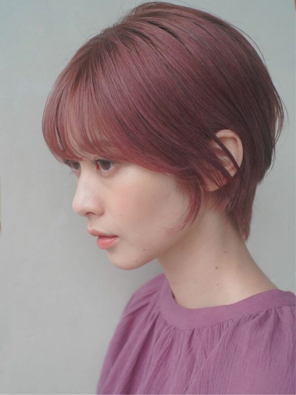 こちらは明るめピンクベージュのヘアカラーをショートに合わせたレディースヘアスタイルです。