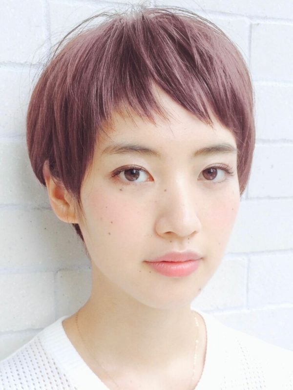 色白で顔色が悪く見られがちな大人の女性におすすめですよ。長めの前髪ありショートが可愛らしい印象ですね。