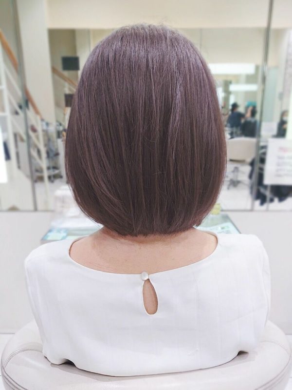 このような白っぽいピンクのヘアカラーは肌の白さ、明るさを際立て儚げな印象に見せます。