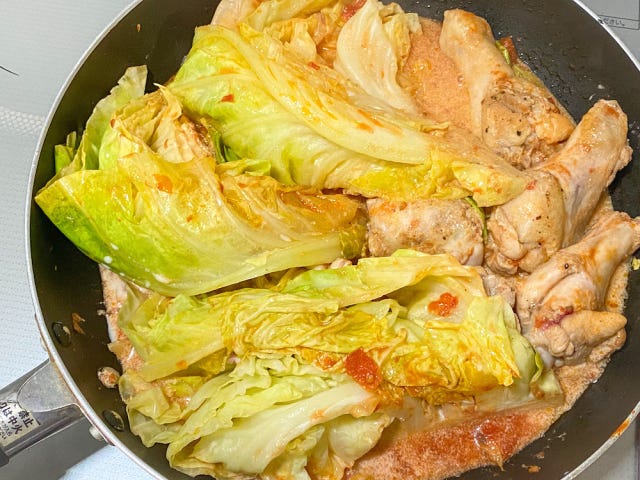 30分手羽とキャベツのトマトクリーム煮