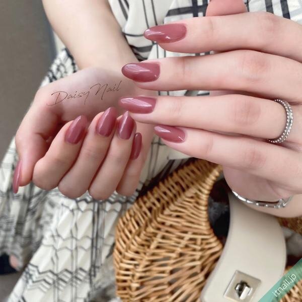 ナチュラルな美しさを意識したいときに選びたい、シンプルなくすみピンクネイル。透け感のあるカラーを爪に施せば、繊細な奥行き感が演出されて上品さが際立ちます。デコレーションなしで仕上げる潔さにも、大人の落ち着きが感じられますね。