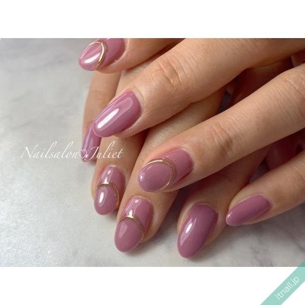 シックな発色で“きちんと感”がまとえるくすみピンクだからこそ、トレンドアートをかけ合わせて大人スタイリッシュを楽しむのもGOOD。爪にリングを装着したかのような立体的なミラーラインで、ネイルデザインを今っぽくアップデートしましょう。