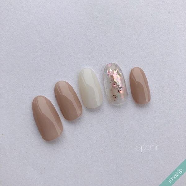 オフホワイトと相性のいいベージュネイルを入れて、大人っぽさをプラスするのもおすすめです。ワンポイントに入れたオフホワイトネイルが引き立っていますね♡シンプルですが、色使いで周りに差がつくネイルです。