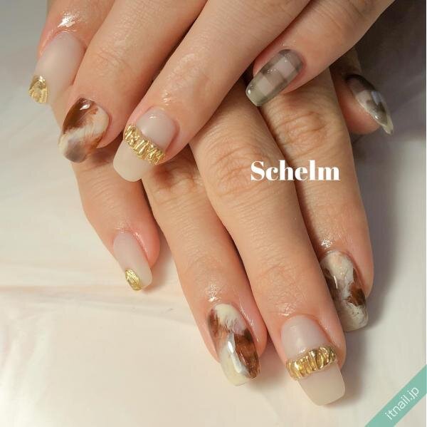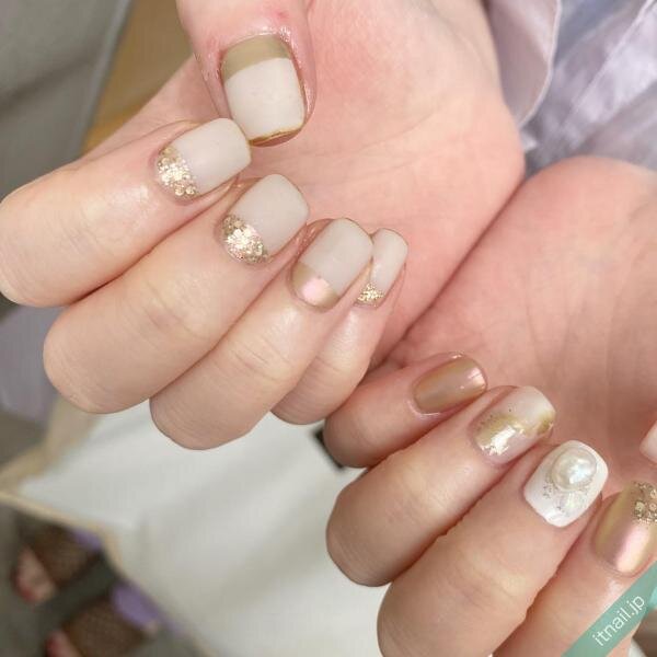 オフホワイトとベージュで上品な大人ネイルへ