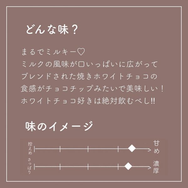 濃厚&甘めな仕上がりなので、ホワイトチョコ好きの甘党さん必見です。