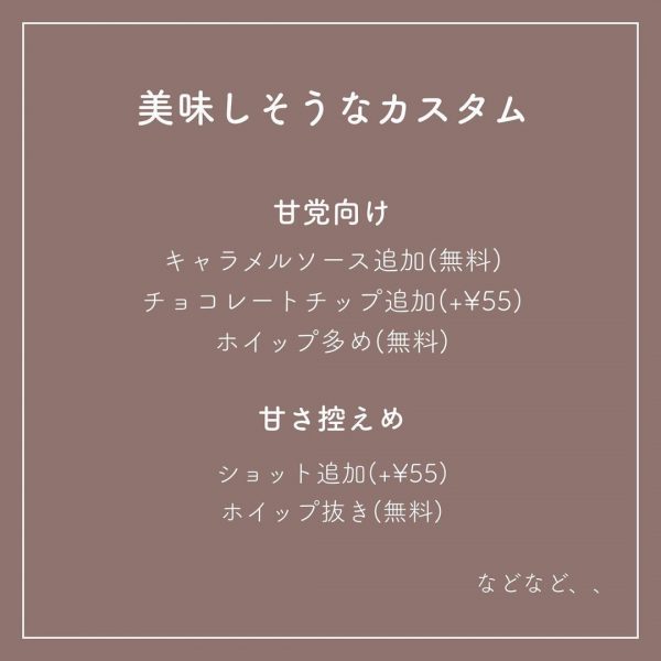 おすすめのスタバカスタムや、新作ドリンクの情報をお届けします。ぜひ、ご紹介するカスタムを試してみてください!
