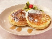 バターをのせ、粉砂糖をふり、シロップをかけていただく。発酵バターをのせて食べれば至福の極み。