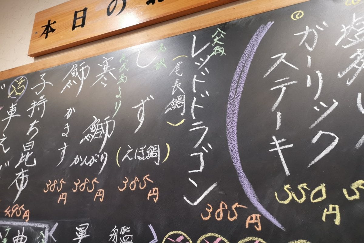 本日のおすすめに書かれたメニューはどれも美味しそうだが、ひときわ目立ったのが、黒板の