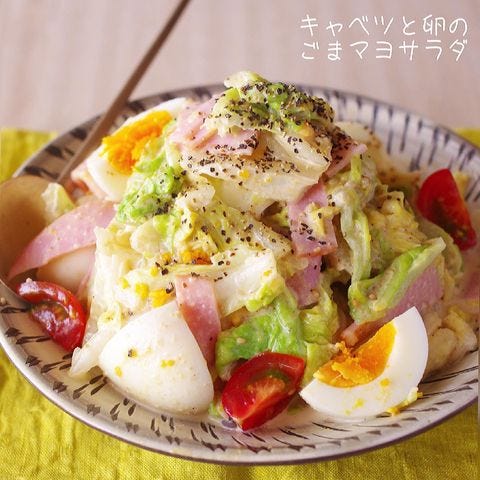 華やかなキャベツと卵のごまマヨサラダレシピ
