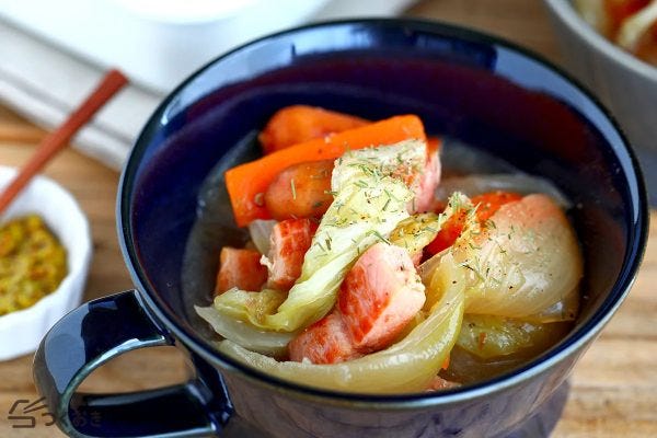 簡単かぶとソーセージのコンソメスープレシピ