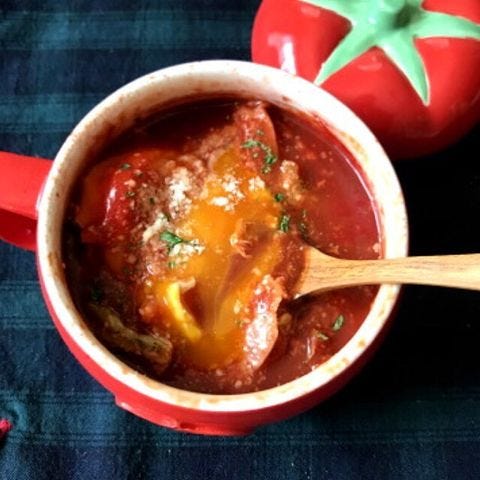 簡単落とし卵とキャベツのトマトスープレシピ