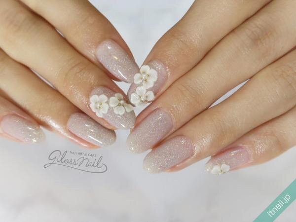 グレーネイルは、フラワーデザインを引き立ててくれる色でもあるので、立体感のあるお花にしてパッと主役にするのもGOOD♡ホワイトカラーの3Dフラワーは清楚で、ブライダルネイルにもぴったりです。