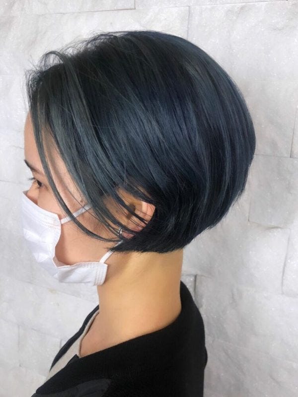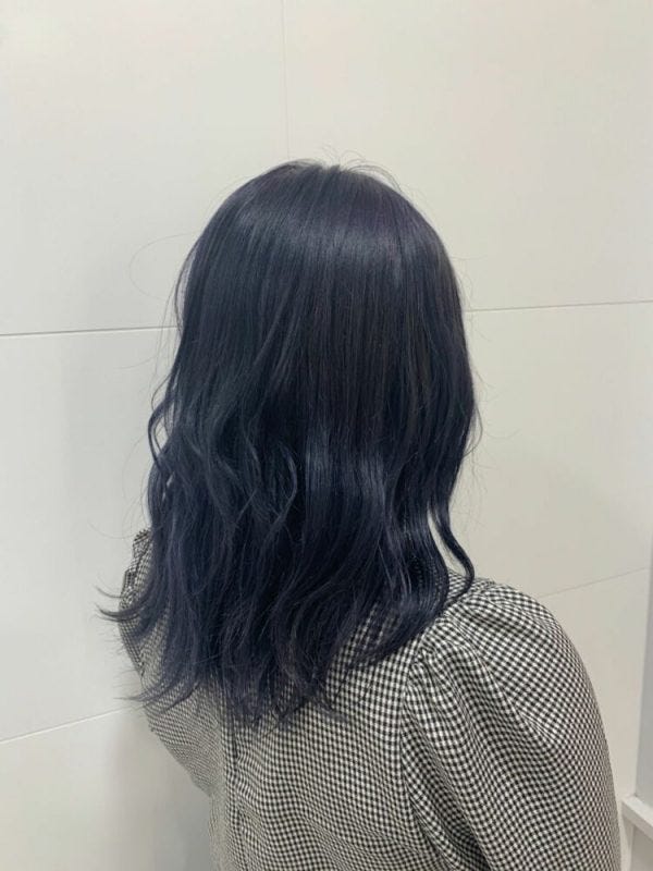 青みをさほど強調しないので、ブルーのヘアカラーに初めて挑戦する大人の女性や暗髪に飽きた方におすすめです。
