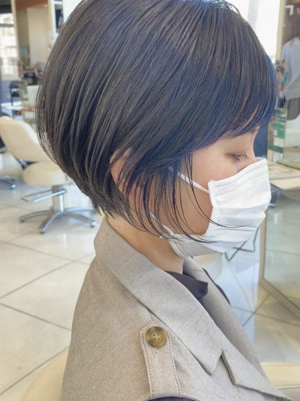 対してこちらはカジュアル派におすすめのネイビーのヘアカラーです。