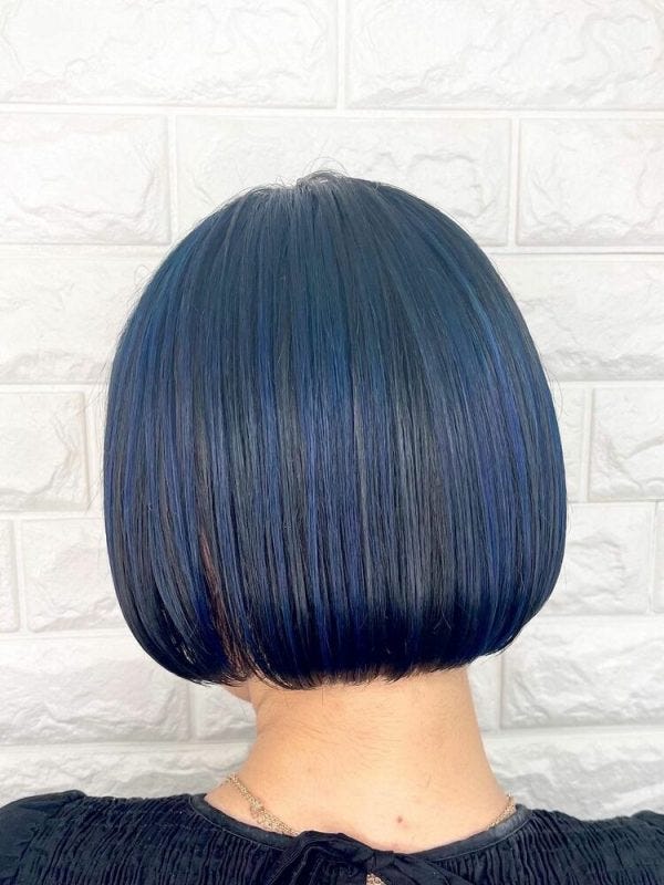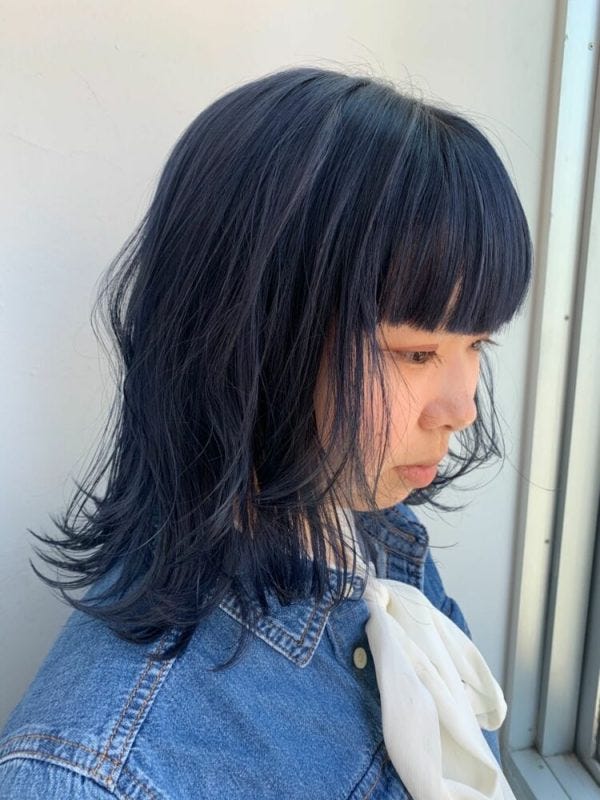 こちらの髪型は表面に明るめのネイビー、内側は暗髪で立体感を出しています。