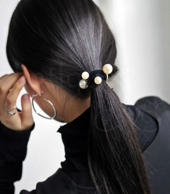 ④結うだけでセンスアップが叶うパール付ゴム