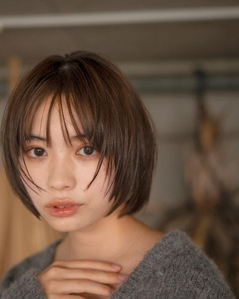 前髪は少し薄めにすると今っぽさがアップします。黒髪ですが重くなく、コンパクトで柔らかい印象のショートですね。