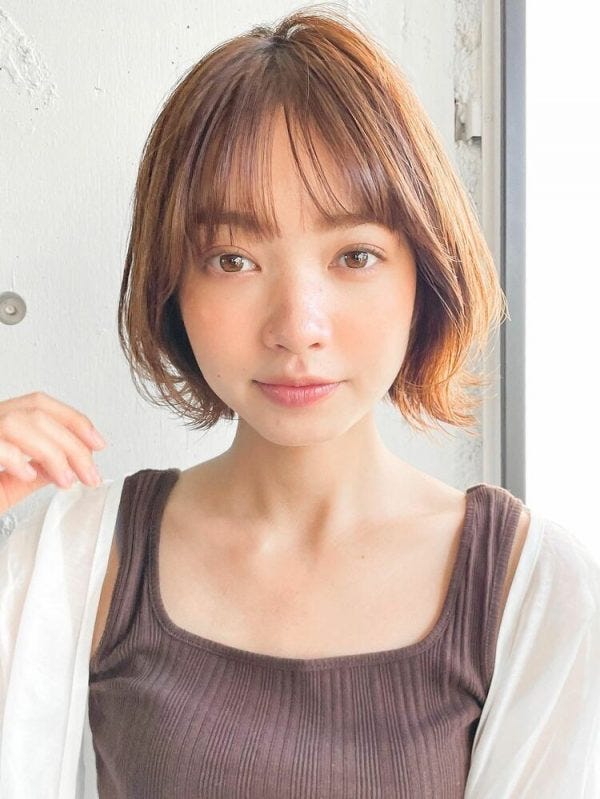 面長さんでも、長めの前髪と丸みのある髪型で顔の形がカバーできるのでおすすめです。