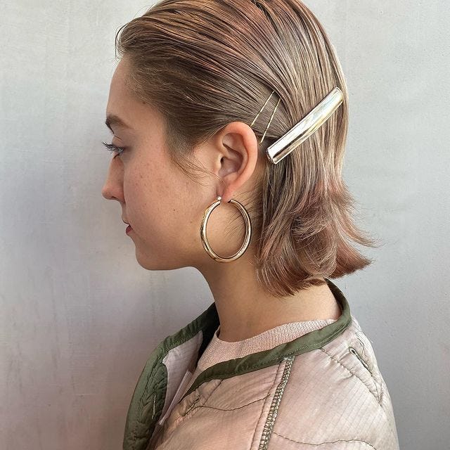 長い前髪を耳元でとめるだけの簡単ヘアアレンジですが、使用するピンを大ぶりでデザイン性のあるものに変えると入学式にも使えるおしゃれな髪型が作れますよ。
