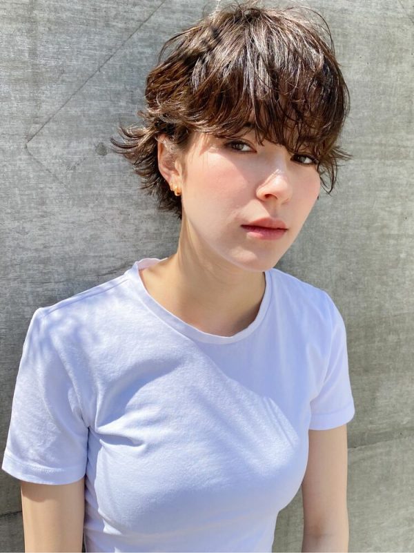 アンニュイな雰囲気でおしゃれなニュアンスパーマの長めショート。