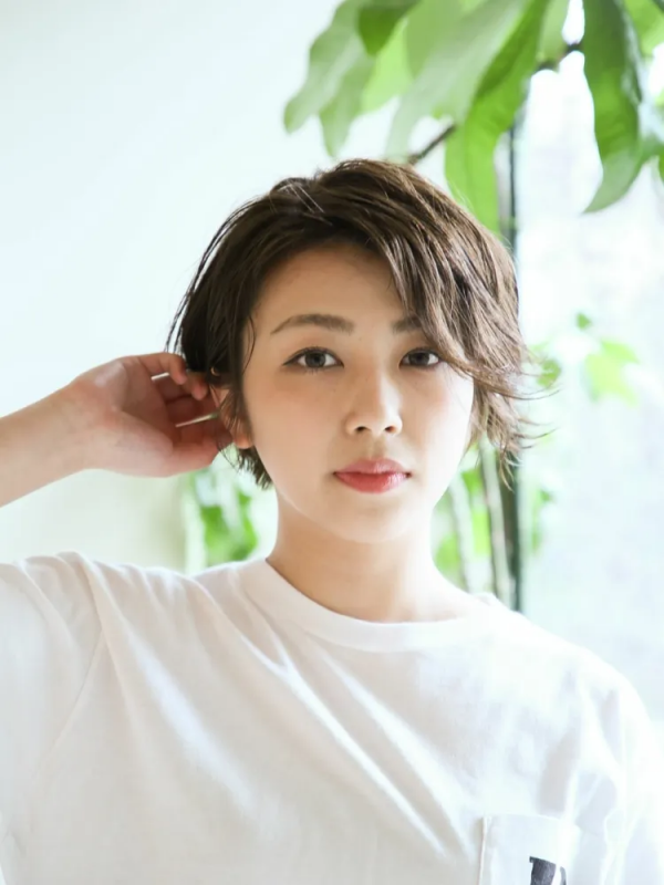 サイドに流れをつけてスタイリングすることで、ショートでもアップ風に仕上がりますよ。